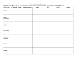 Domain And Kingdom Characteristics Worksheet