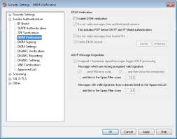 You can configure a custom content policy filter to scan for a dkim signature in the message header along with a filter action to take when a message header triggers the filter. Dkim authenticates the reputation and identity of the email sender and their email signing practices for additional handling i e. Enable domainkeys identified mail dkim verification for internal messages by default these check boxes are not marked.
