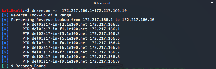Reverse Domain Lookup Kali